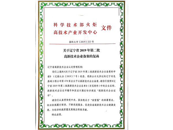 榮獲高新技術(shù)企業(yè)資質(zhì)