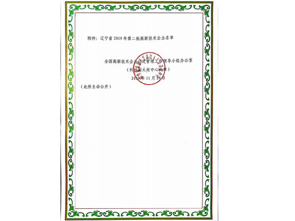 慶祝丹東市隆盛鑄造有限公司榮獲遼寧省2019年第二批高新技術(shù)企業(yè)的榮譽稱號